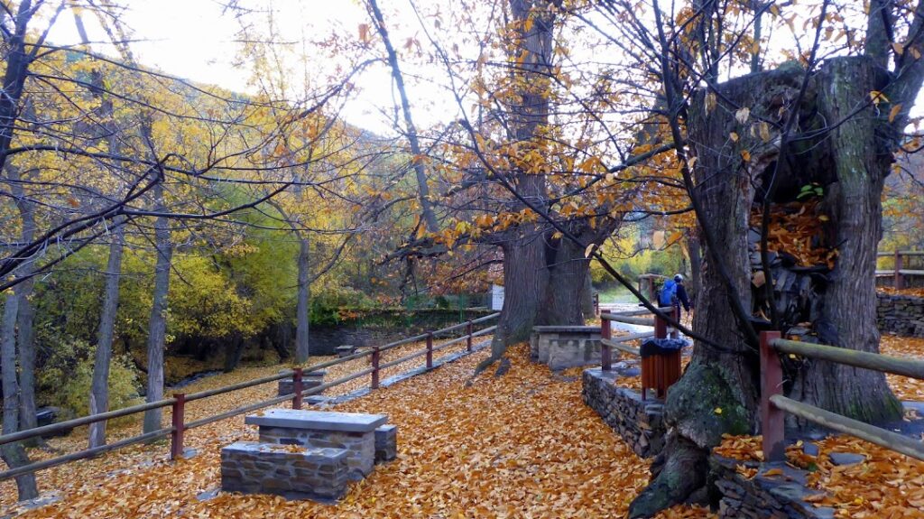 En el Horcajo, unión de los arroyos de los Tejos/Recodos y de los Pasillos, se forma el río Benéjar que hemos recorrido desde el castañar de la Rosandrá por un bosque de galería con abundante vegetación de ribera entre la que destacan álamos, alisos y sauces, que son un espectáculo en el otoño.