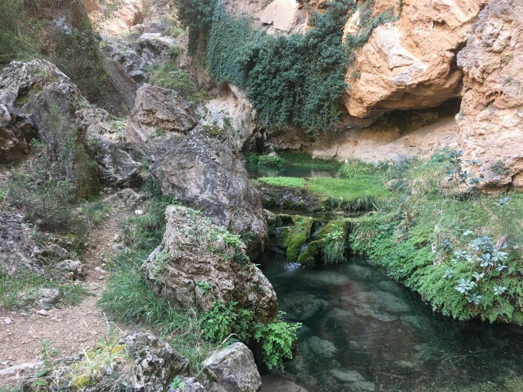 No es necesario recorrerla entera para gozar de estos parajes, pero si llegas al final encontrarás un mirador con unas inolvidables vistas del Recó del Aguamulas. Se trata del anfiteatro rocoso donde nace este río, en cuya base hay praderas y huertos abandonados.
