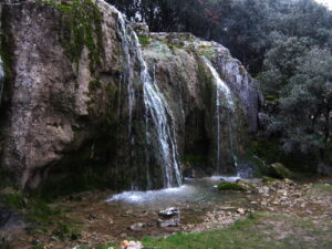 A continuación, se pasa por la fuente del Madroño, continuando la subida entraremos en un precioso bosquecillo de encinas con sus troncos cubiertos de musgo y sus ramas de líquenes. Es un lugar realmente mágico. Tomamos la Colada de las Pilas, paralelos a Arroyo de Fuenfría hasta pasar el cortijo de Pedro Rebola, y de aquí vamos a las chorreras. Es complicado verlas con agua, por lo que el mejor momento es la primavera, pero aun así son muy bonitas.