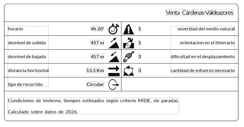 La caminata comienza en el punto de Venta de Cárdenas. Desde aquí seguirás la pista o sendero que sube en dirección norte, ganando terreno poco a poco y entrando en zonas de vegetación que combina paisajes impresionantes, atravesando paisajes de matorral mediterráneo, con encinas, alcornoques y quejigos dominando la vegetación. Los numerosos madroños están en estas fechas con sus frutos en su punto de maduración, pero hay que comerlos con moderación, pues tienen un alto contenido en etanol