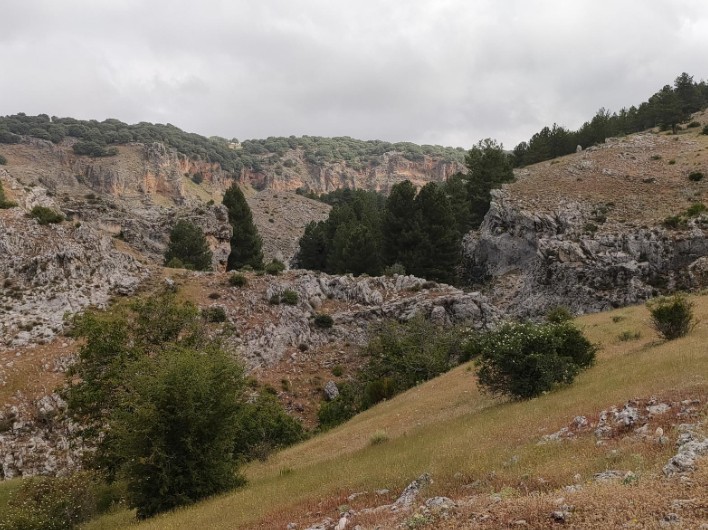 Desde el cortijo, el camino desciende suavemente de nuevo hacia el valle y enlaza con las pistas y senderos que conducen de vuelta a Pontones, cerrando la circular.