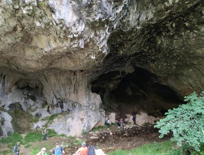 La Cueva del Agua aparece en una pared caliza sobre el río: una surgencia espectacular donde el agua brota directamente de la montaña y cae al Segura. Es uno de los puntos más singulares de la ruta.